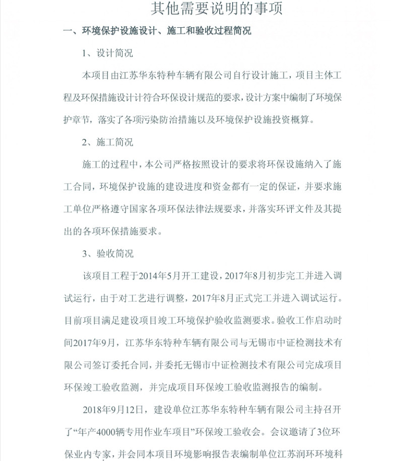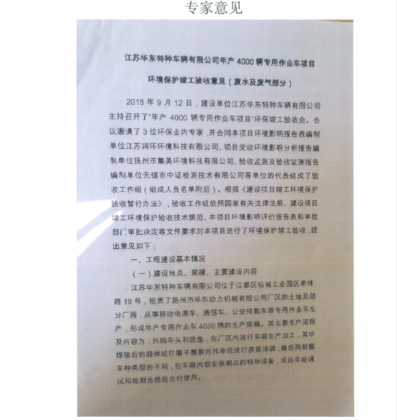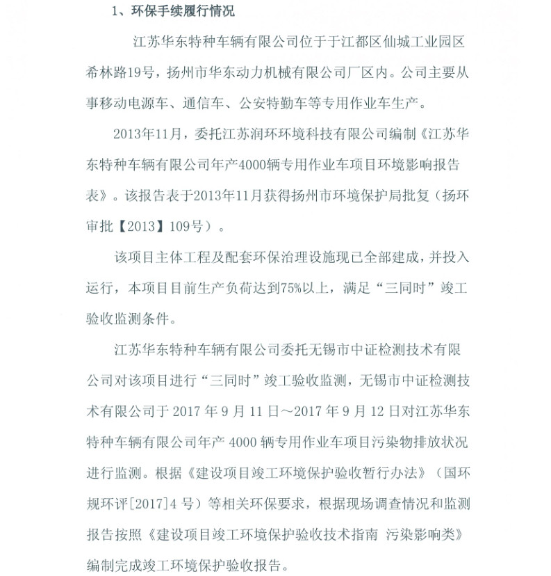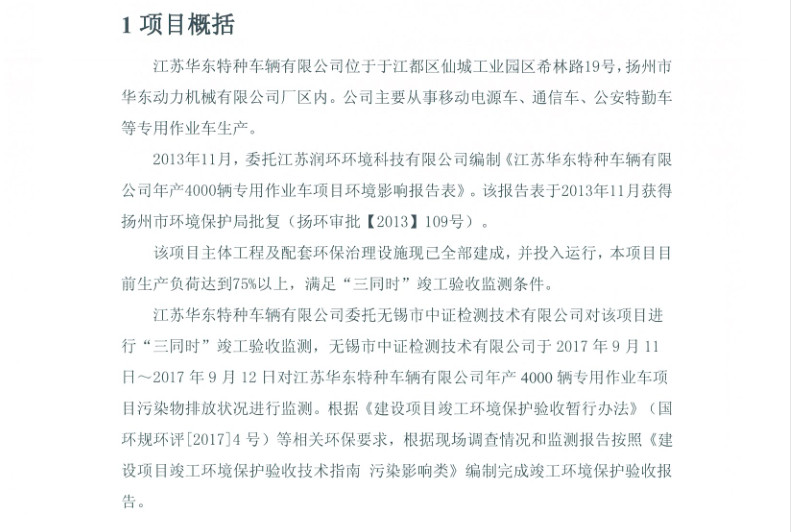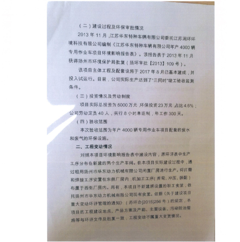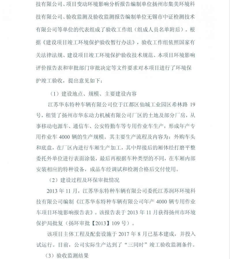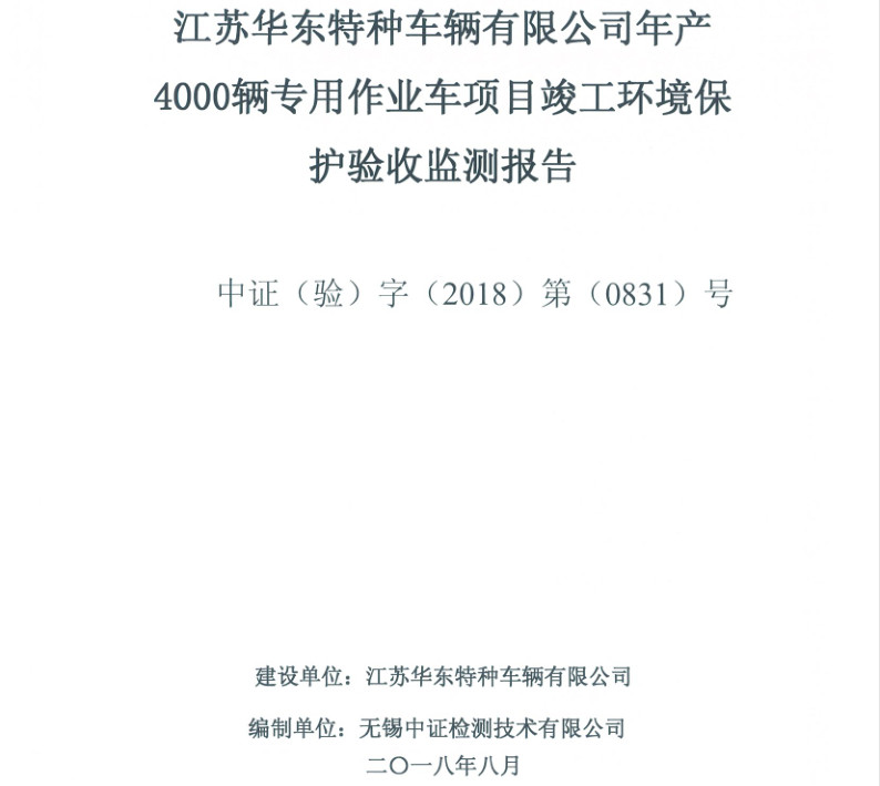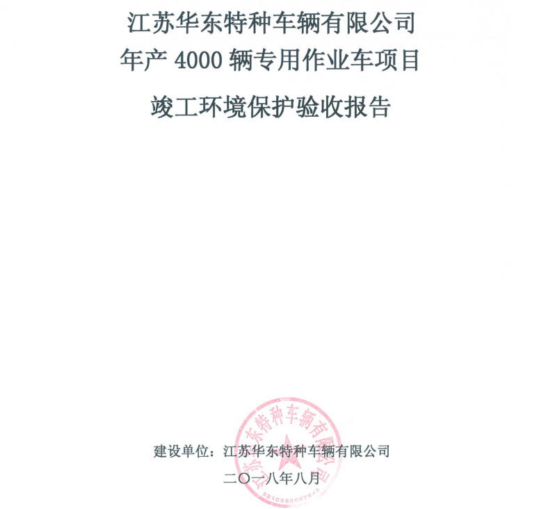 江蘇華東特種車(chē)輛有限公司年產(chǎn)4000輛專(zhuān)用作業(yè)車(chē)項目竣工環(huán)境保護驗收報告
