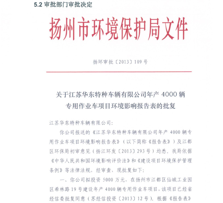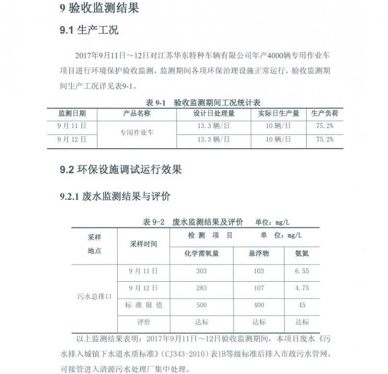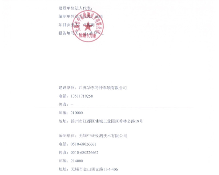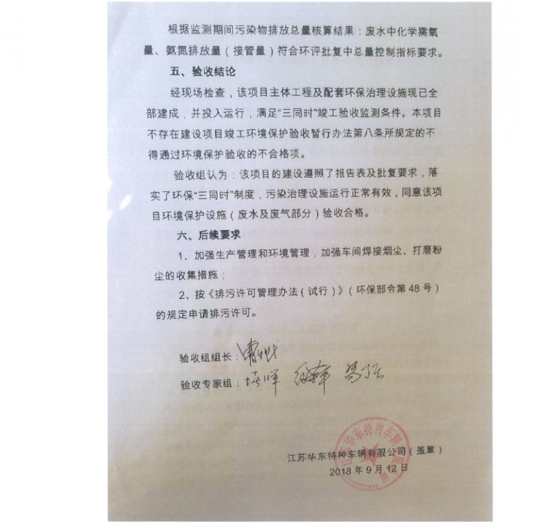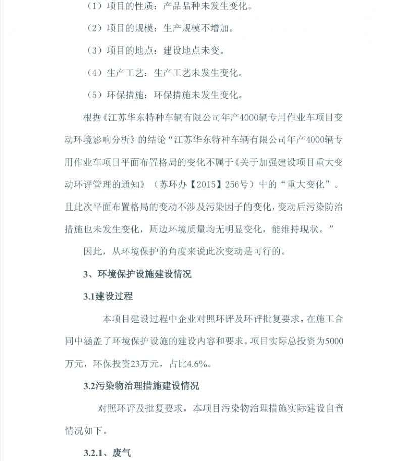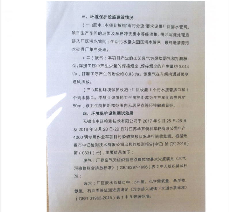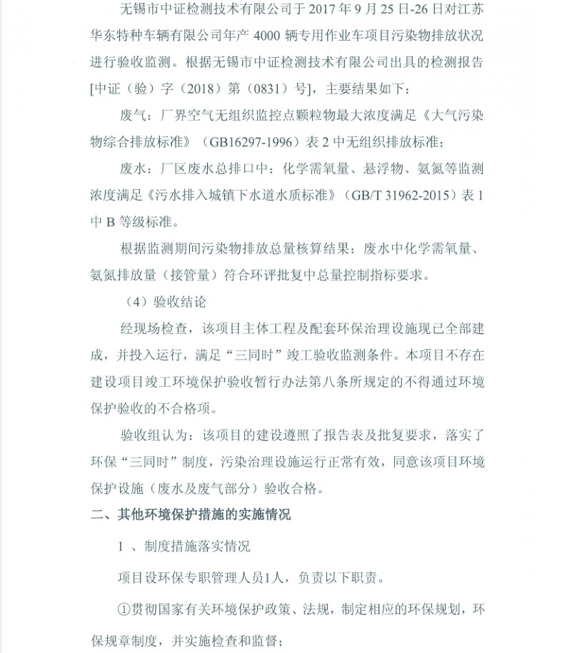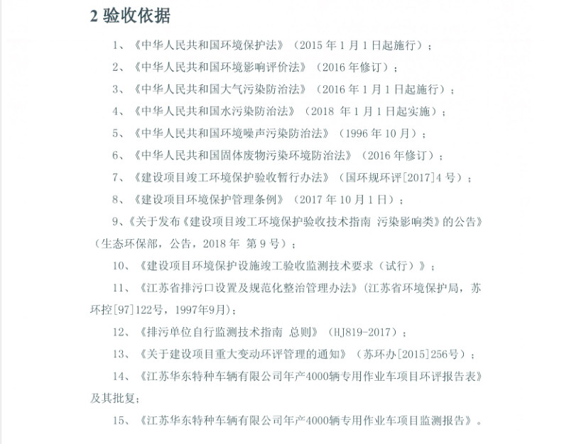 江蘇華東特種車(chē)輛有限公司年產(chǎn)4000輛專(zhuān)用作業(yè)車(chē)項目竣工環(huán)境保護驗收報告